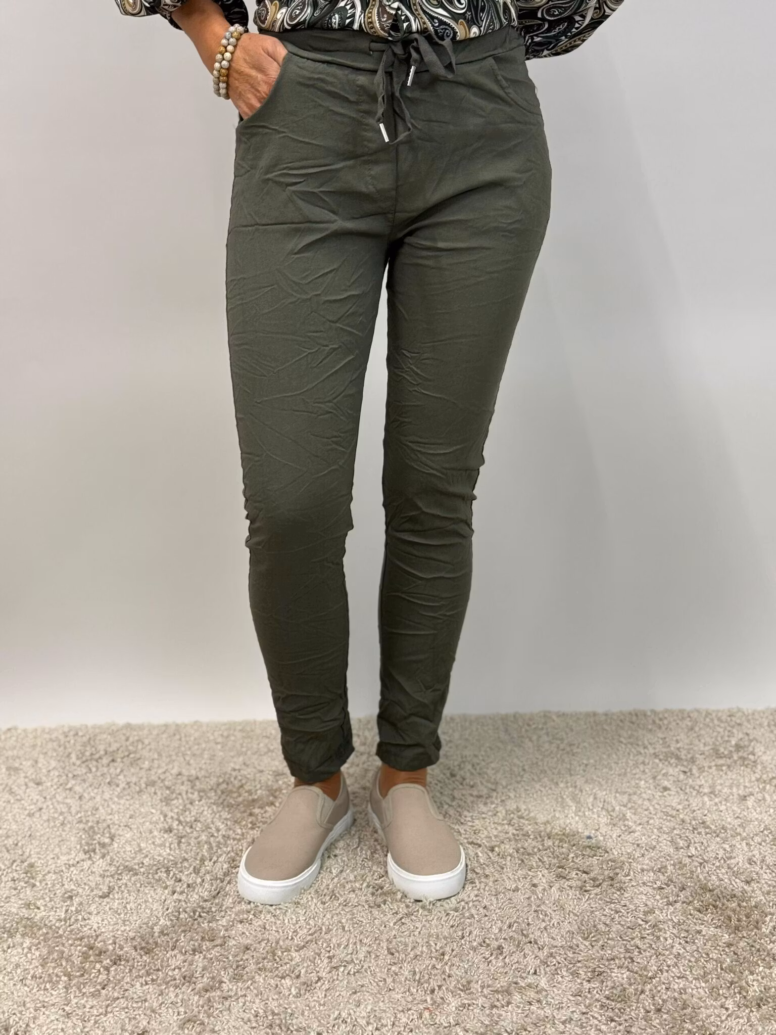 Magiskt stretchiga byxor med resår i midjan och fickor fram & bak. Byxan är designad för att ge en optimal komfort och en tidlös design. Passar både till vardag och fest!