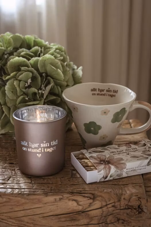 Denna lykta kommer med texten Allt har sin tid, en stund i taget.