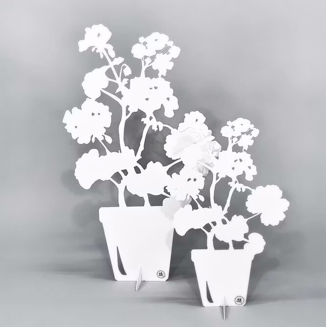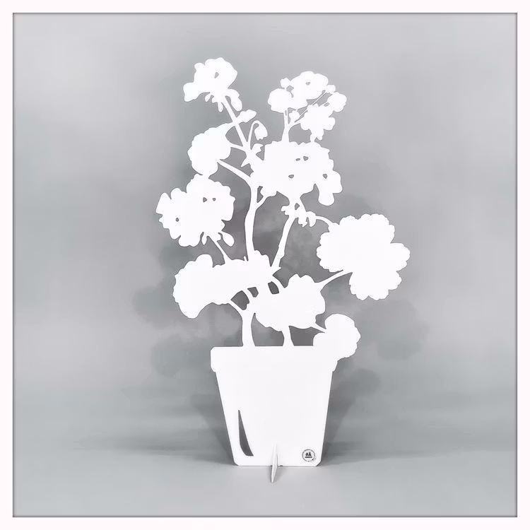 Vacker & lättplacerad Pelargon växt i plåt som blir en fin inredningsdetalj både i fönster & i rummet. Småländskt hantverket i plåt som inte kräver vatten eller någon speciell omsorg mer än dammvippan en gång ibland. Snyggt, underhållsfritt och framför allt hållbart!