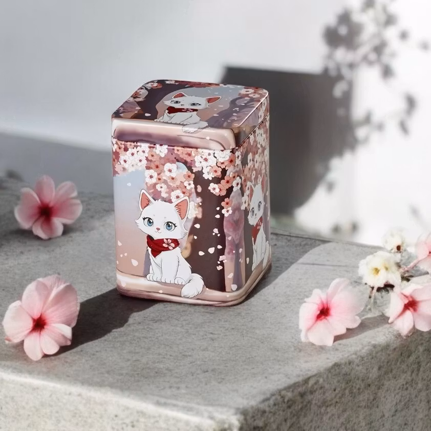 Teburk Kohana cat 80 kr Teburk Kohana i plåt med motiv av katt & blommor.. I lager. Lägg i korgen Dela Information Recensioner Teburk Kohana cat med en katt och blommor i vitt & rosa toner.Mått: 7,3 x 7,3 x 10 cm.Rymmer 100 gram te Material: plåtLeverantör: Bromma Kortförlag