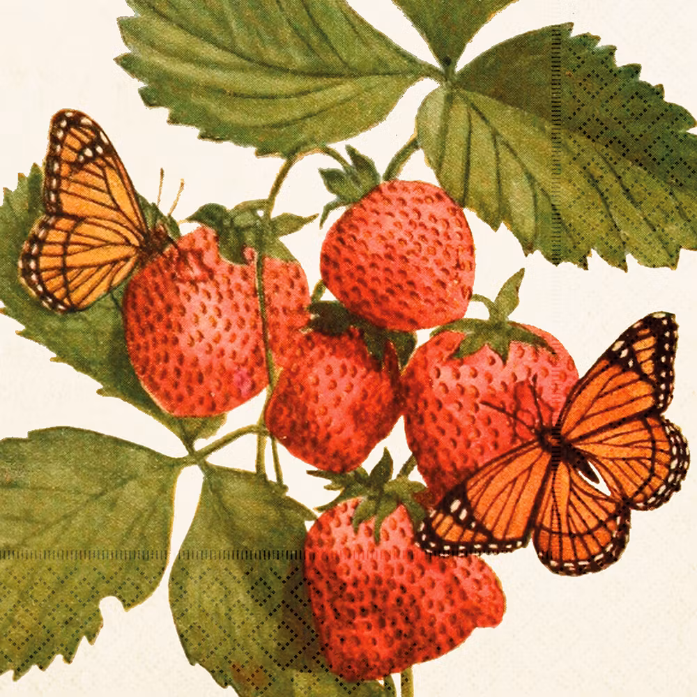 Servett Jordgubbar & Fjärilar 49 kr Servetter med jordgubbar & fjärilar. De gör det lilla extra vid sommardukningen! Slutsåld Dela Information Recensioner 20-pack lunchservetter med motiv av jordgubbar & fjärilar.Mått: 33 x 33 cm FSC-märktaLeverantör: Sköna Ting