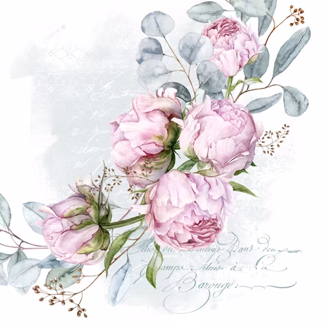 Vacker servett med rosa pioner!