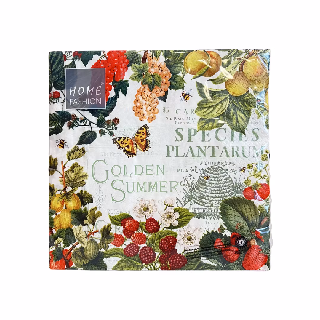Pappersservett med sommarens bär & frukter. En somrig servett som passar fint till sommarens alla dukningar.