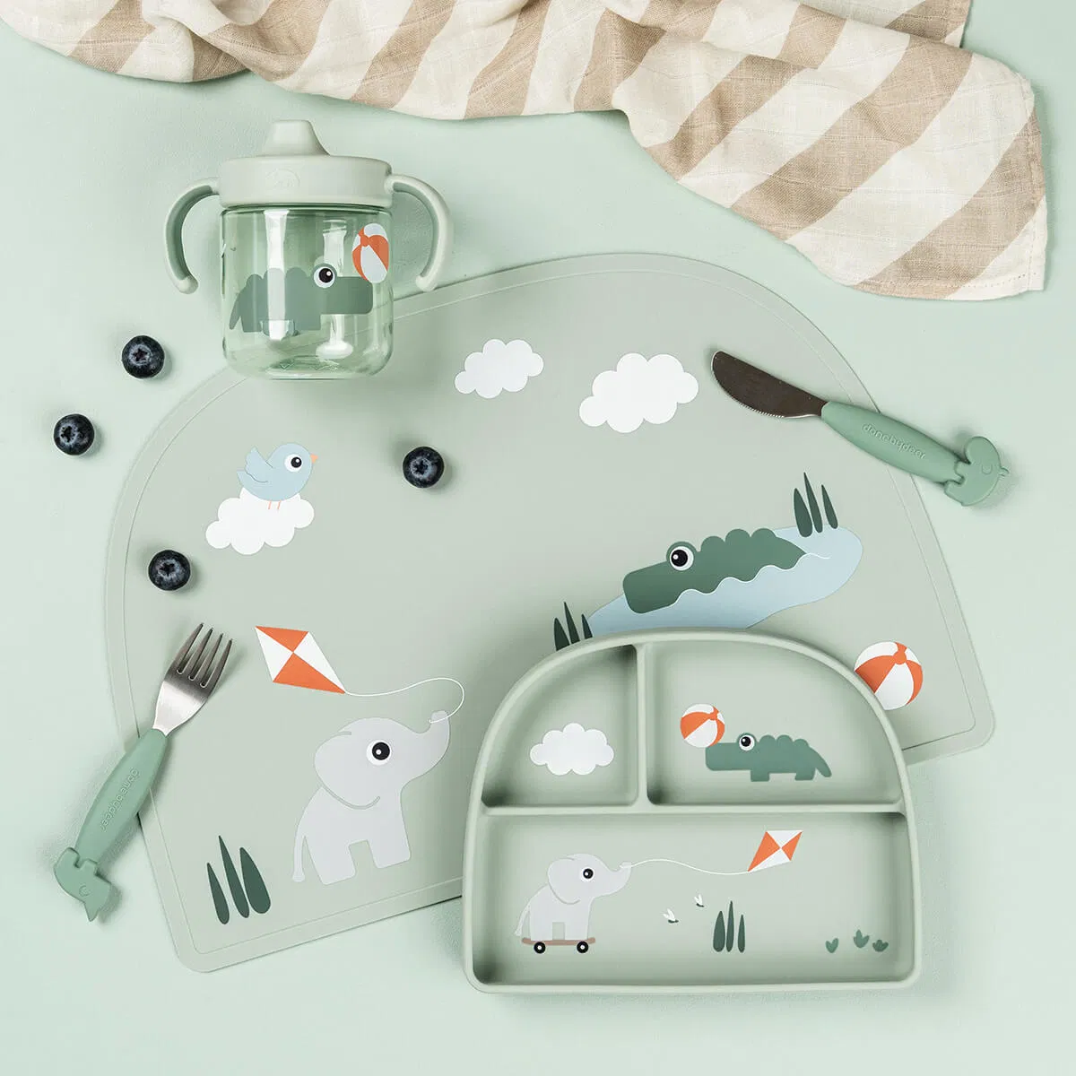 Låt din lilla älskling njuta av en måltid från facktallriken Playground. Genom att separera maten hjälper du ditt barn att uppfatta och förstå olika smaker och texturer. Dela upp barnets middag och låt varje fack hålla maten på plats. Den höga kanten hjälper ditt barn att skopa upp maten, medan den praktiska sugproppen under tallriken ser till att den håller sig på plats.