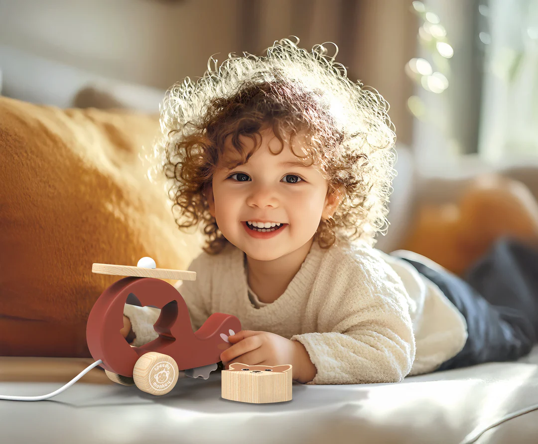 Låt ditt barn ta sina första steg in i rörelse och fantasi med denna draghelikkopter, en klassisk leksak som är omgjord för dagens små upptäcktsresande.