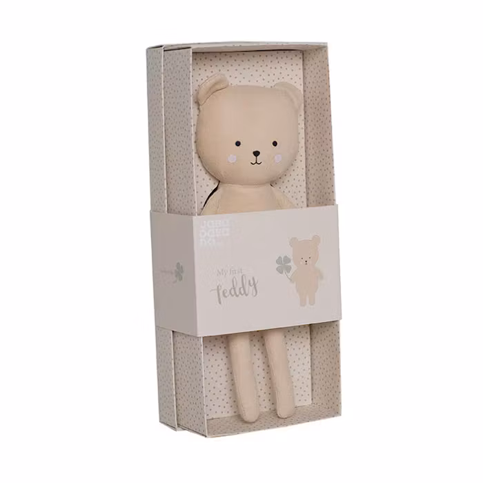 Teddy är en mjuk och gosig kompis för de allra minsta barnen. Kommer i en fin och exklusiv presentförpackning som passar lika bra till första födelsedagen, dopet eller som gåva till den nyfödda. Ett barn känner sig ofta trygg med en nalle, så låt denna buddy bli ditt barns bästa vän att gosa med vid läggdags.