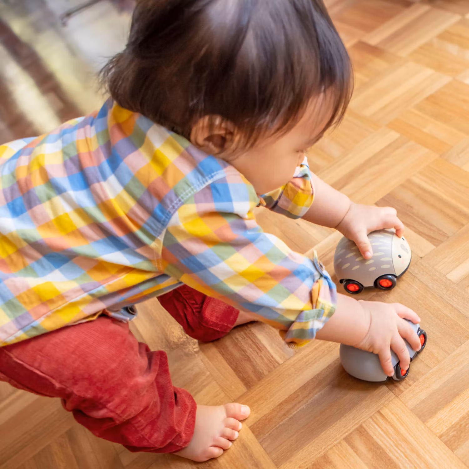 Den perfekta leksaken för små händer, dessa batterifria små djur (koala & piggsvin) åker fram och tillbaka över golvet. Perfekt för att bygga upp grovmotoriken hos små när de lär sig krypa/gå.