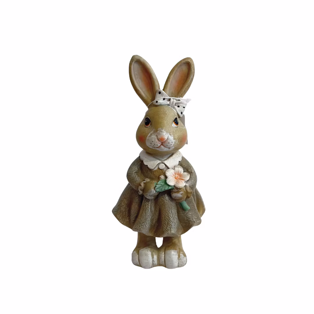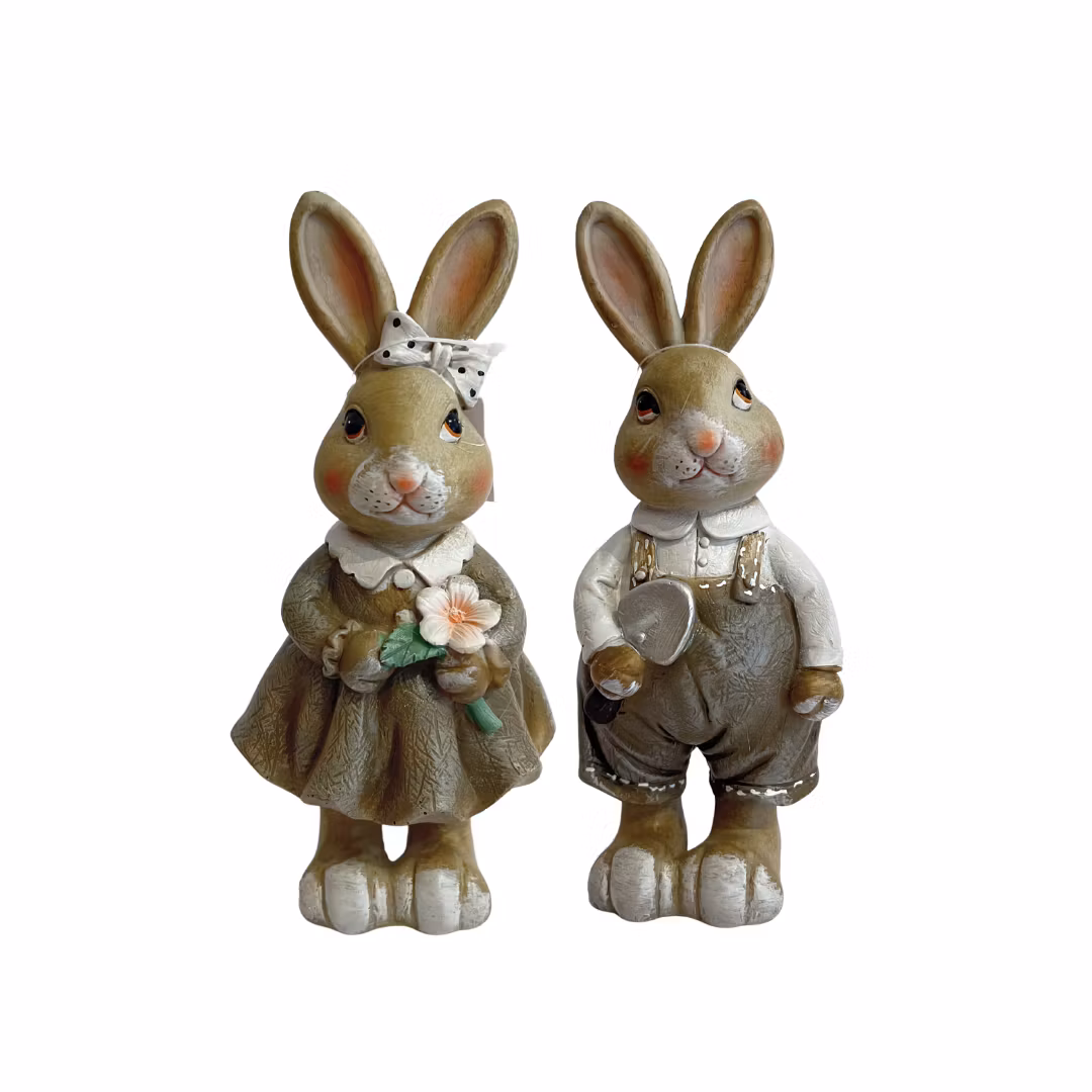 Sött kaninpar som är ute i trädgården för att odla och plocka in vackra blommor.