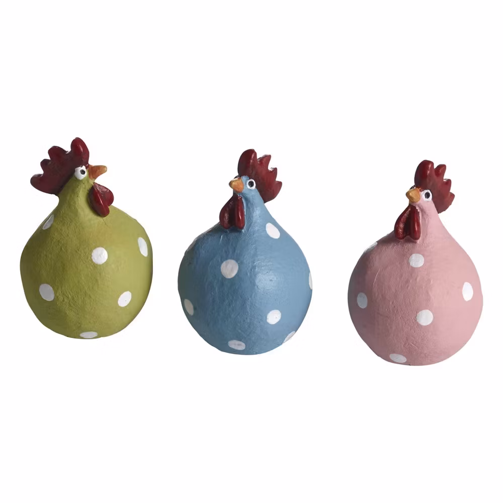 Denna lilla trio med prickar passar lika bra att stå framme hela året som till påsk. Alla hönor är handmålade vilket gör dem unika, avvikelser mellan bild och produkt kan förekomma.