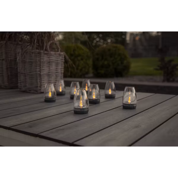 Solcellsbelysningen Tropea är en bordsdekoration i svart plast som lyser upp med gult sken i mörkret. Denna bordsbelysning är lättplacerad och ger ett vackert sken i din trädgård, balkong eller terrass. Placera solcellslampan där solen kan nå panelen under dagen för att få ultimat laddning till det medföljande batteriet.