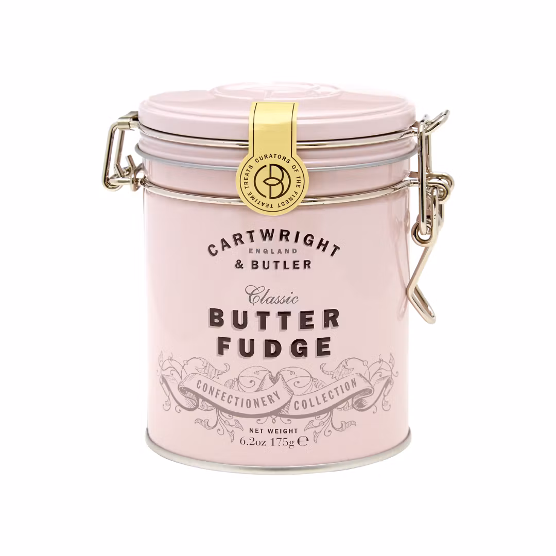 Fin plåtburk med smörfudge från Cartwright & Butler.