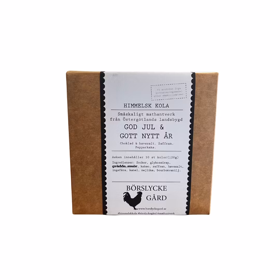 Ingredienser: Socker, glykossirap, grädde, smör, kakao, saffran, havssalt, ingefära, kanel, nejlika och bourbonvanilj.