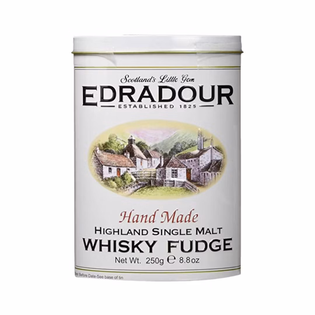 God whiskyfudge i snygg plåtburk. Fudgen är tillverkad efter ett traditionellt recept i hjärtat av Skottland och är den perfekta presenten för whiskyentusiaster världen över.