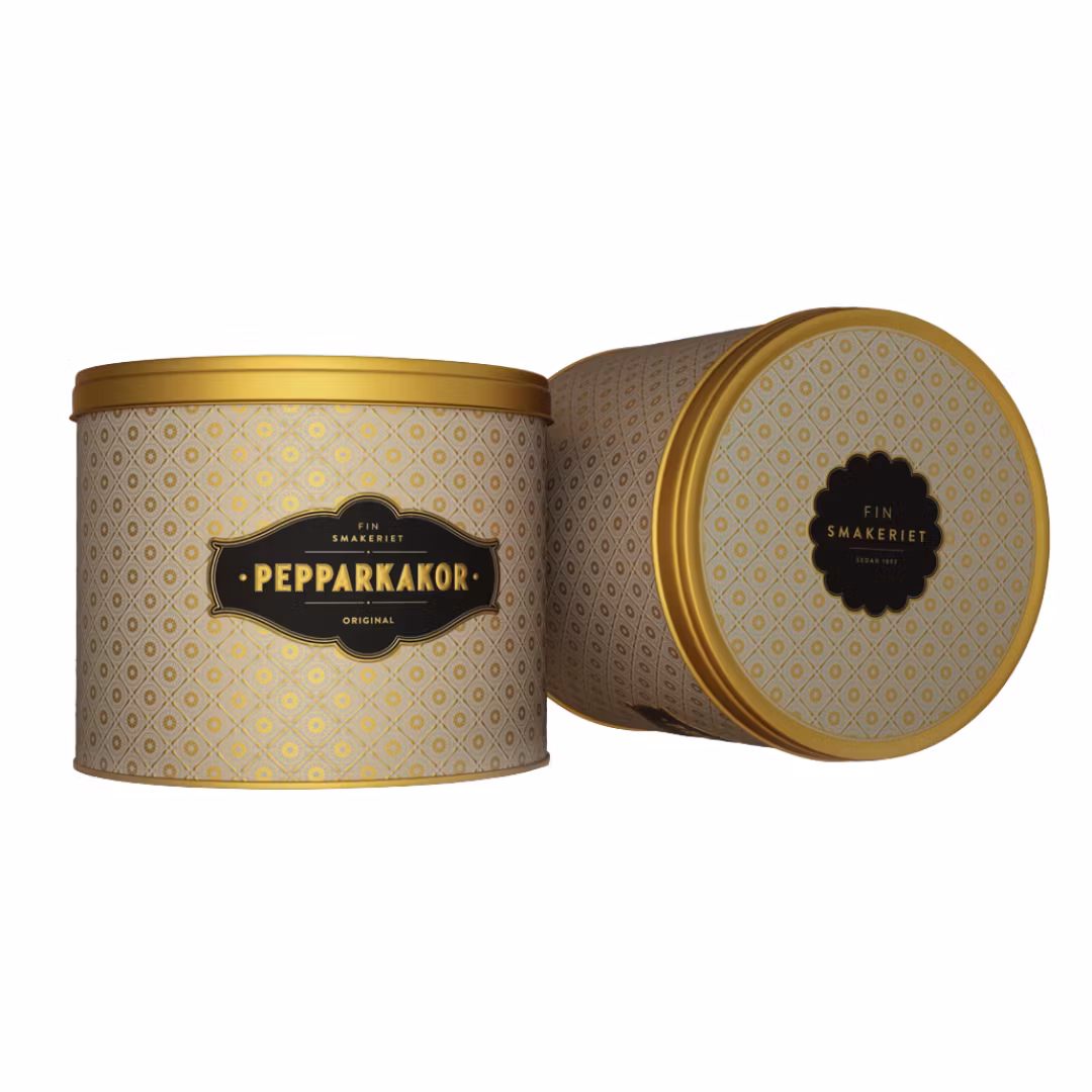 Finsmakeriet Pepparkakor i en fantastiskt fin burk i warm beige som är färgen för 2025! Burken innehåller 430 g pepparkakor och de är hantverksmässigt bakade utan konserveringsmedel eller transfetter. Sätt guldkant på fikastunden!