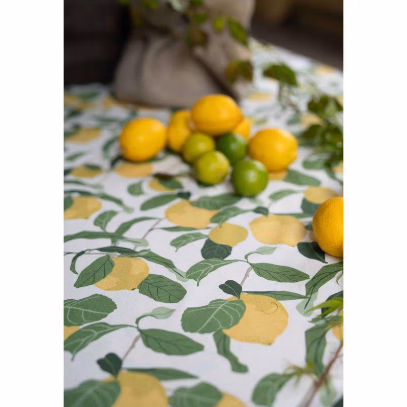 En duk med tryckt citronmönster på i slät bomullskvalitet som utstrålar en sommarkänsla och för tankarna till den soliga italienska landsbygden i Toscana. Den släta bomullskvaliteten ger duken en mjuk och behaglig textur.