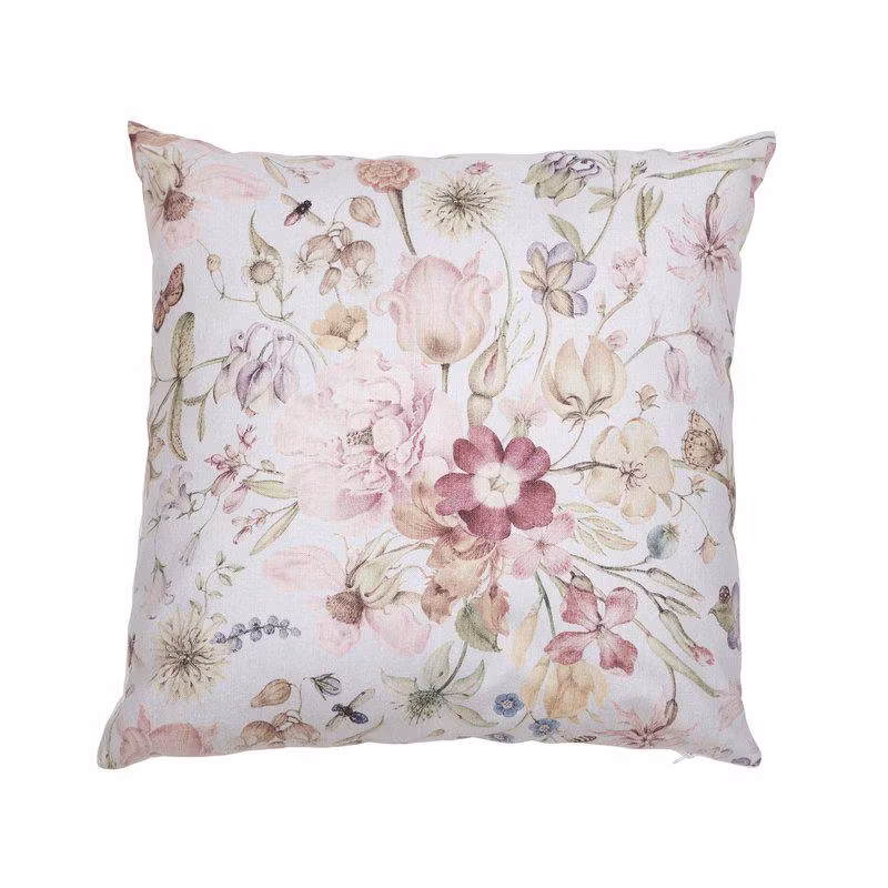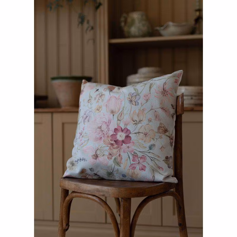 Kuddfodral med ett romantiskt blommönster på framsidan, tillverkat i en mjuk och härlig kvalitet som ger en behaglig känsla. Baksidan är matchande enfärgad, vilket skapar en fin balans mellan mönster och enkelhet.