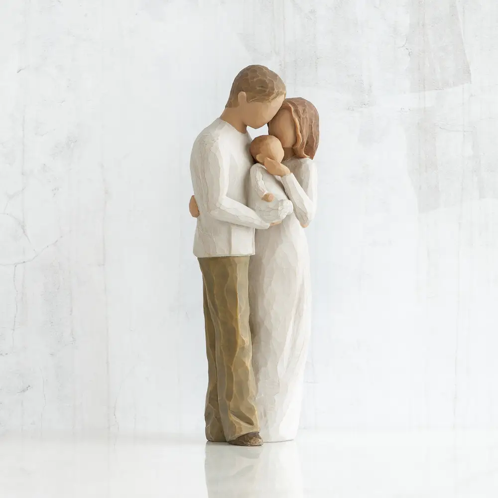 Our Gift är en vacker figur från Willow Tree. När du kommer hem med en nyfödd baby, förstår du det fantastiska med att få vara en familj - detta nu, är din familj. Det är början på något underbart och nytt. Och det är en glädjefull gåva.