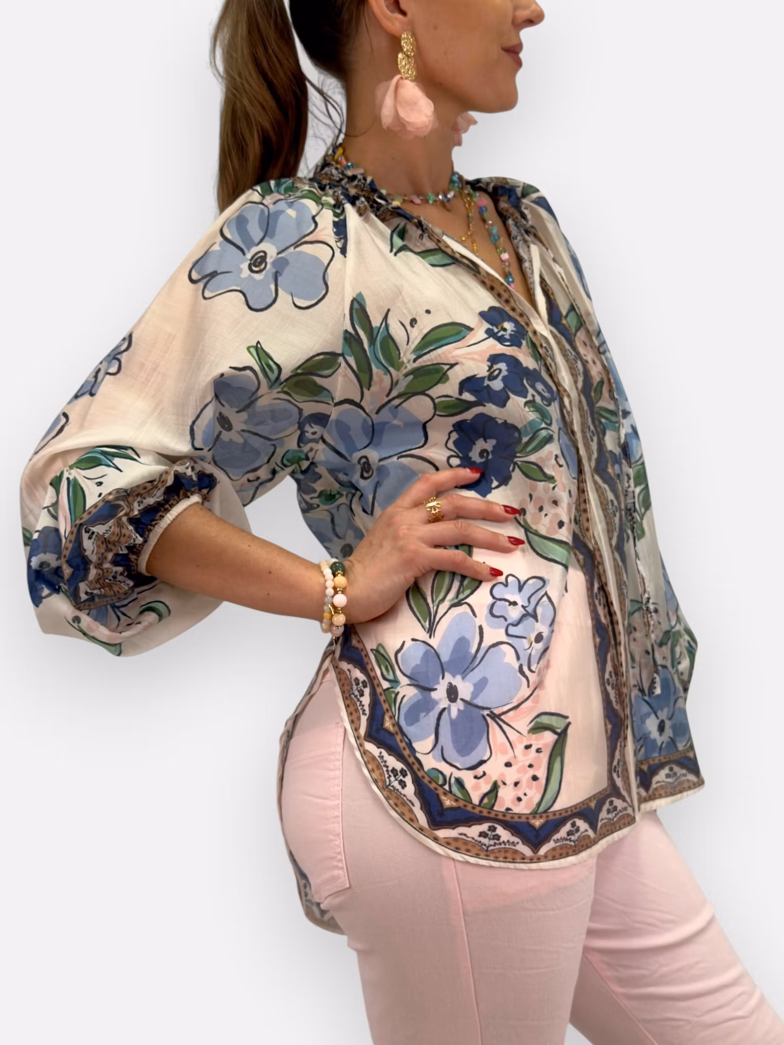 Anne är blusen som känns som en mjuk sommarvind mot huden. I följsam tencel faller den ledigt och smickrande, medan det romantiska mönstret och de fina knytbanden vid halsen ger en bohemisk känsla med själ. En sådan där blus du vill snurra runt i – och aldrig riktigt ta av dig.