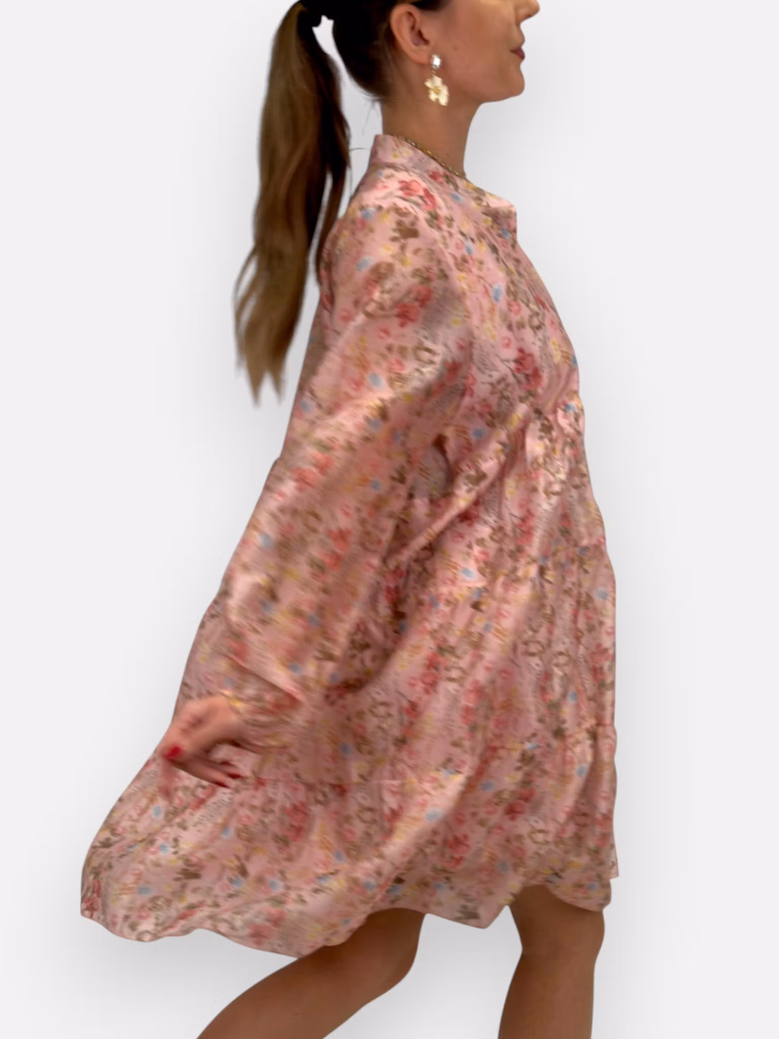 Belle är klänningen som får det att kännas som att du svävar fram. Den mjuka tencelkvaliteten faller lätt och följsamt medan det romantiska blommönstret ger liv och rörelse i varje steg. De feminina volangerna och den avslappnade siluetten skapar en perfekt balans mellan lekfull och elegant. Belle är en sådan klänning du tar på dig när du vill känna dig både fri och fantastisk – utan att ens försöka.