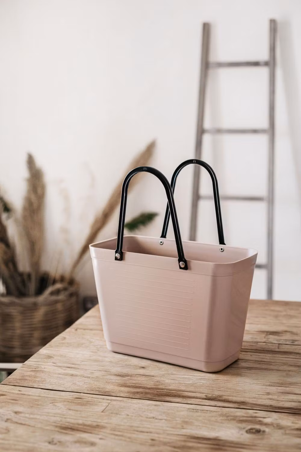 Den mindre Hinzaväskan överraskar med sin stora funktionalitet. Den är perfekt som handväska, picknickkorg och till smart förvaring i hemmet och på arbetsplatsen. Väskan är tålig, står stadigt och är lätt att hålla ren.