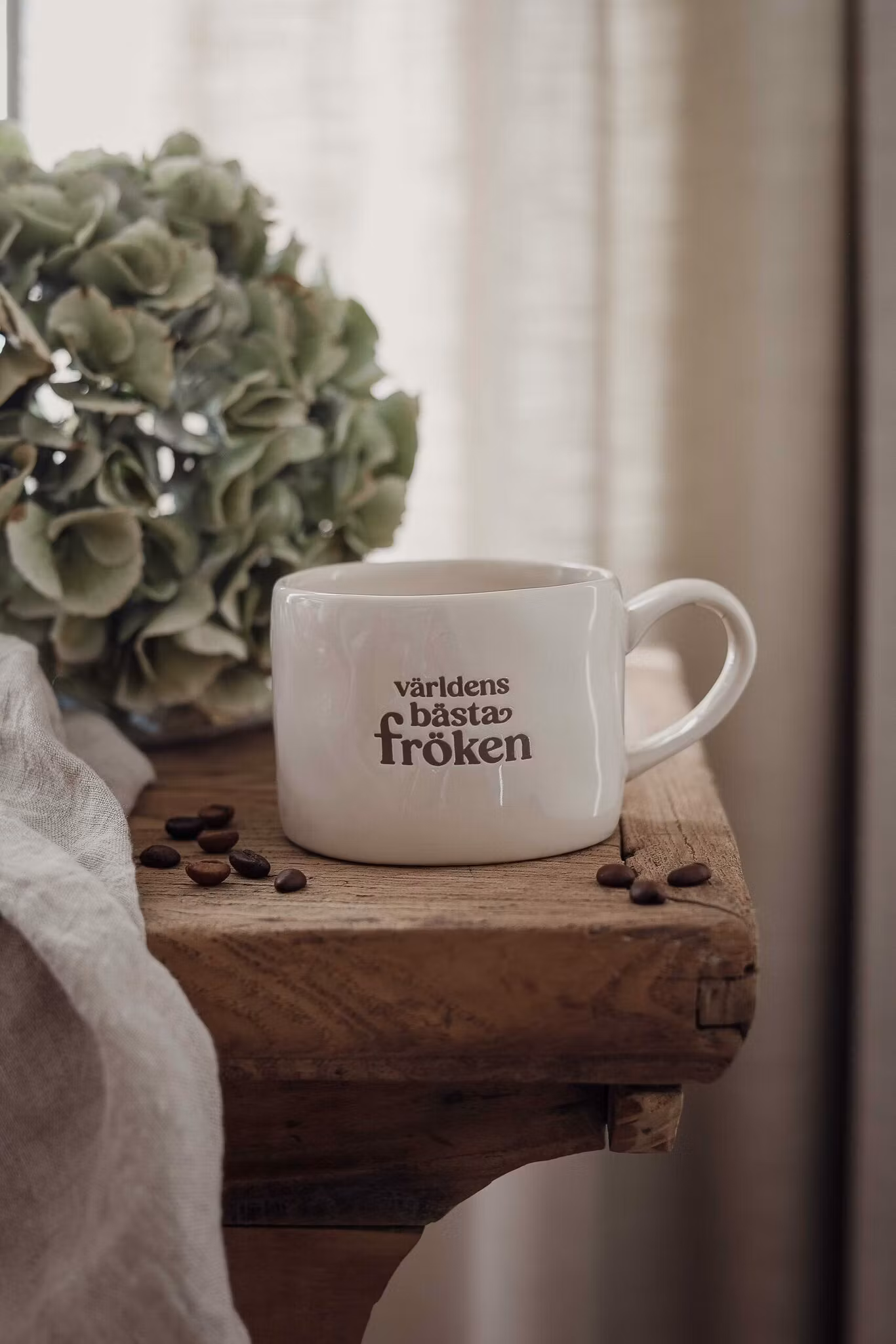 Ljuvlig mugg med organisk handgjord känsla och silkscreen text Världens Bästa Fröken. Muggen är gjord i stengods som tål micro och diskmaskin samt är foodsafe säkrad.