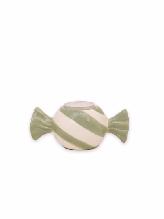 Cool ljuslykta i form av en godis med randigt papper runt. Finns även i rosa rand.
