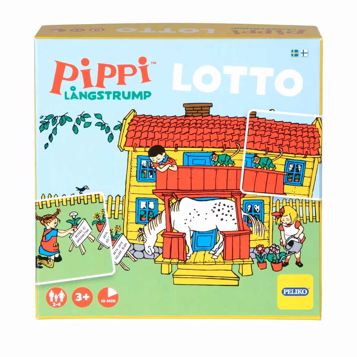 I Pippi-lotto samlar man bildbrickor på spelplaner med roliga motiv från Pippis värld. Bilderna på spelplanerna saknar vissa detaljer som fylls i allteftersom brickorna läggs på plats. Den som först fyller sin spelplan vinner! Spelet kan spelas på två sätt: som ett enkelt lottospel eller som ett minnesspel. Ett enkelt och underhållande spel - perfekt även för de yngsta i familjen!