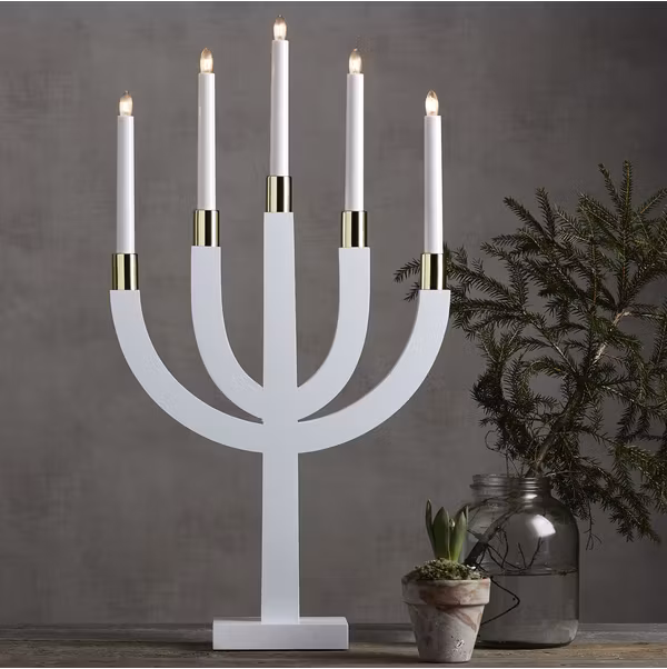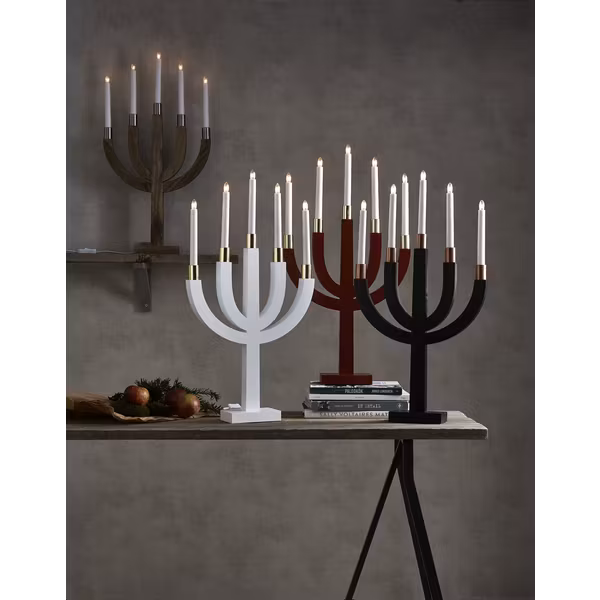 Vit träljusstake med mässingsbas på ljusen. Placera ljusstaken exempelvis i fönstret för att skapa en härlig adventstämning i hemmet.