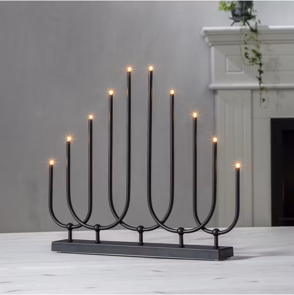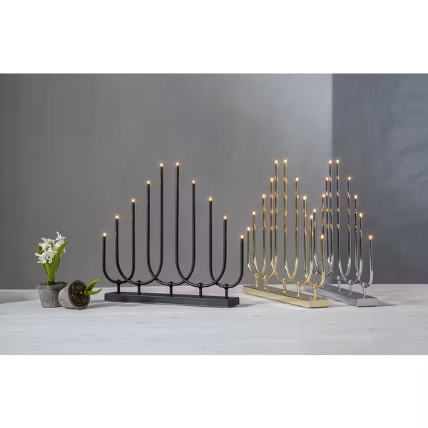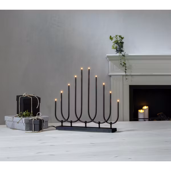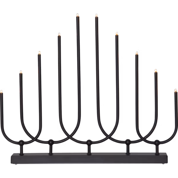 En elegant ljusstake i svart färg. 10st E5 ljuskällor som gör att ljusstakens lampor glöder vackert och sprida en härlig julkänsla.