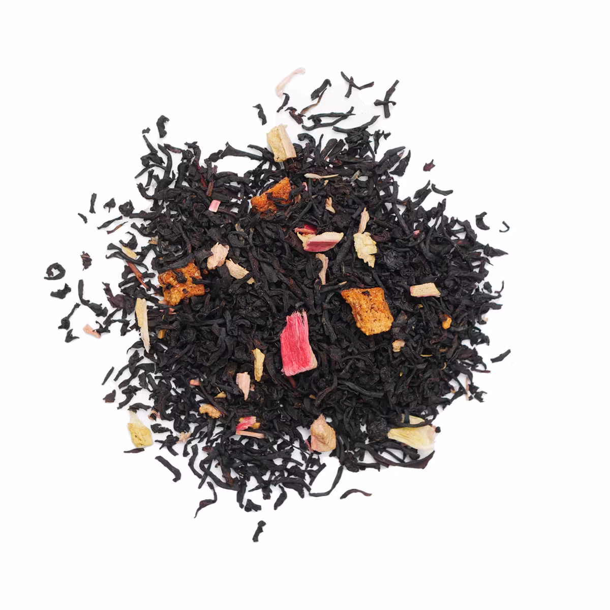 Ingredienser: Svart te, rabarber, jordgubbar, fläderbär, arom av rabarber, kvitten och fläder.